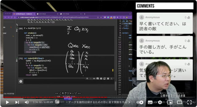 | 概要 | Pythonによるプログラミングの基本を同時に学びながら、dwave-ocean-sdkについてライブラリを導入し量子アニーリングマシンの使い方の基本を抑えていく。 基本的なQUBOを量子アニーリングマシンに投げる方法について、及びリバースアニーリング等実機を利用することで初めて実験できる現象についても紹介する。 |