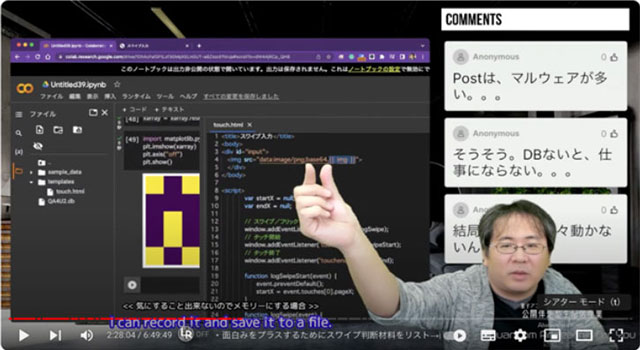 YouTube等動画配信サービスを利⽤しながらチャットを活⽤した多⽅向に⾏われる討論を実現し、⽣配信授業による双⽅向の議論による理解促進とプログラミング能⼒の向上を図ります。